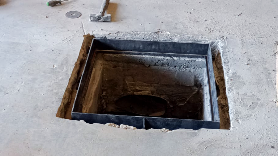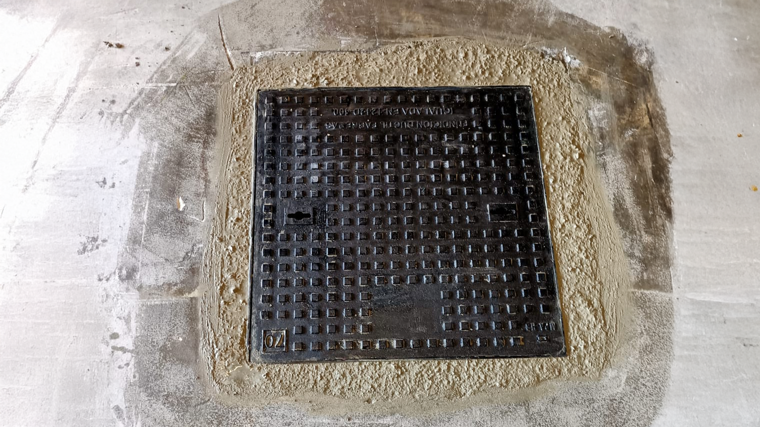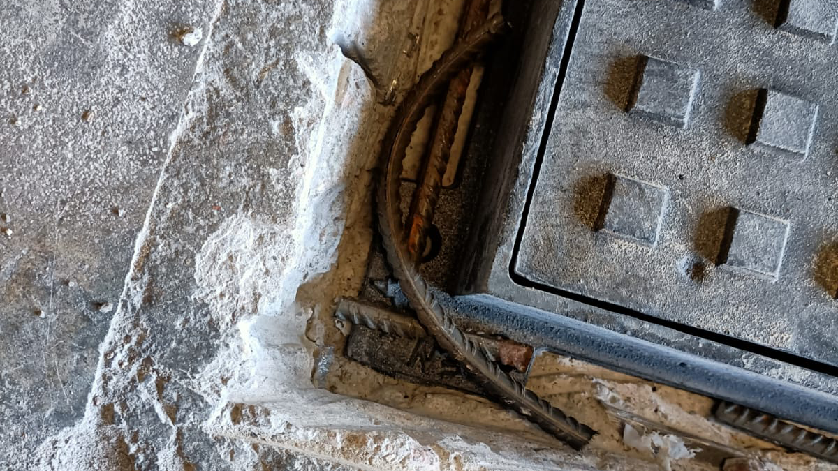 Renovación de la tapas de la alcantarilla para garantizar mayor resistencia y seguridad en el área. Los bordes han sido reforzados con materiales duraderos y se ha realizado un ajuste preciso para evitar filtraciones y desplazamientos.